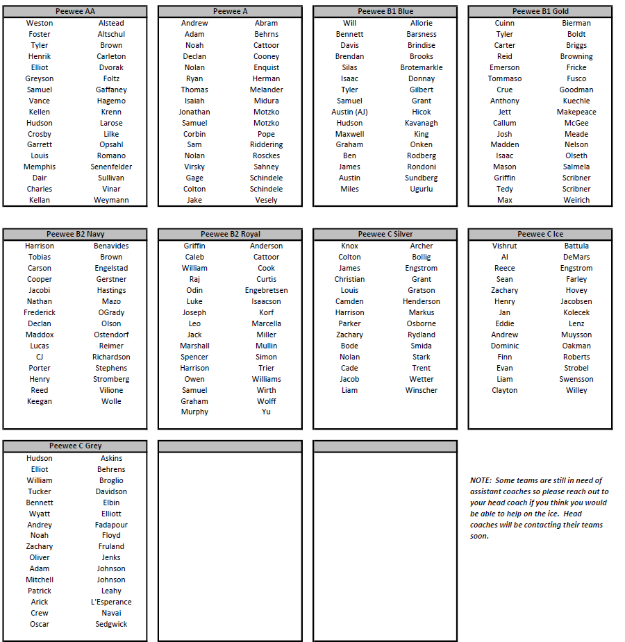 Peewee Tryout Page