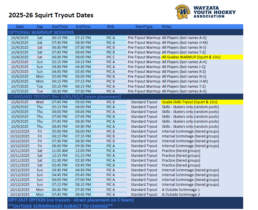 Squirt Tryout Page