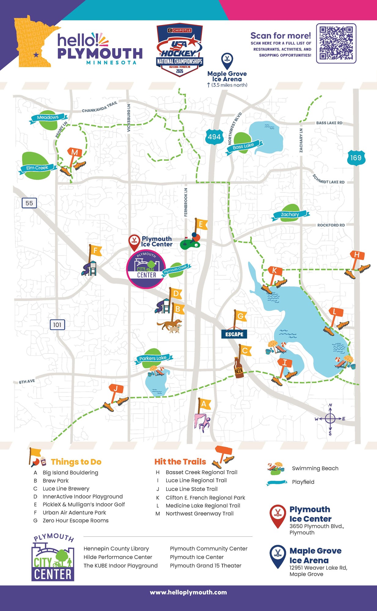 Here you will find helpful information for planning your time in Plymouth, Minnesota at Wayzata Youth Hockey Association - host of the USA Hockey High School National Championship Tournament. Plymouth, Minnesota and our surrounding cities have a lot to offer visitors and these resources are here to help you plan your visit.