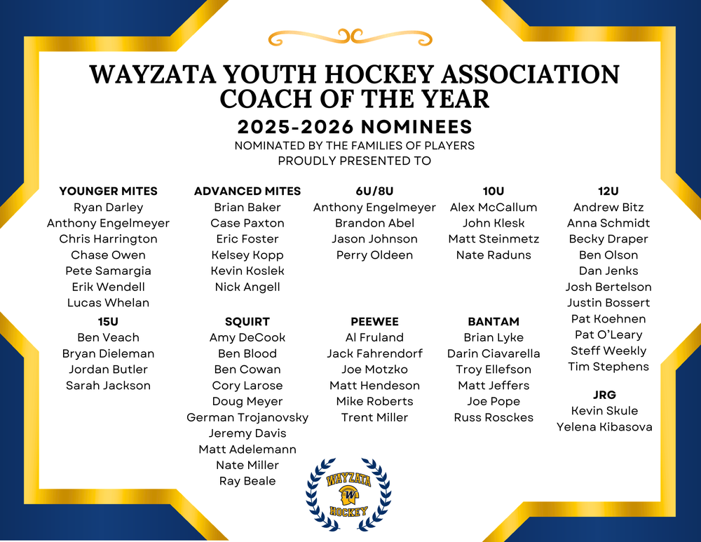 Congratulations to the coaches nominated for the Coach of the Year Award! These coaches were nominated by the families of player for their dedication, inspiration, and commitment to their teams.