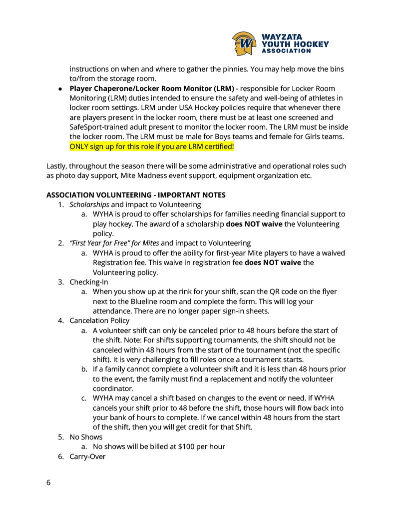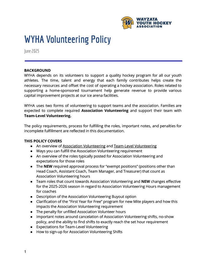 The WYHA Volunteer Policy is below. To access the document as a PDF, click the link directly below. For easier viewing on mobile, the document can be viewed below.