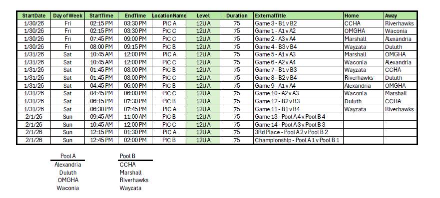 - All tournaments are Pool Play