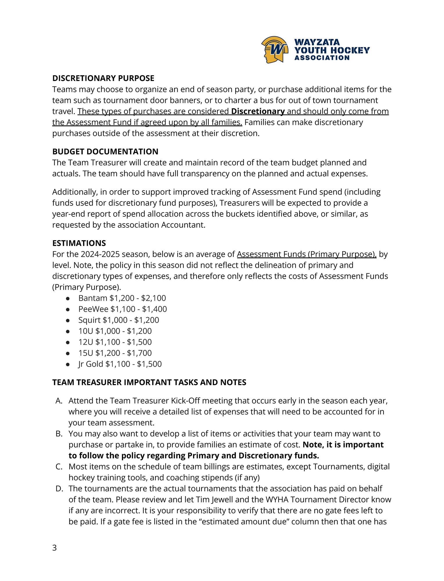 The following document is an overview of Assessment Funds and the Team Treasurer Guidebook.